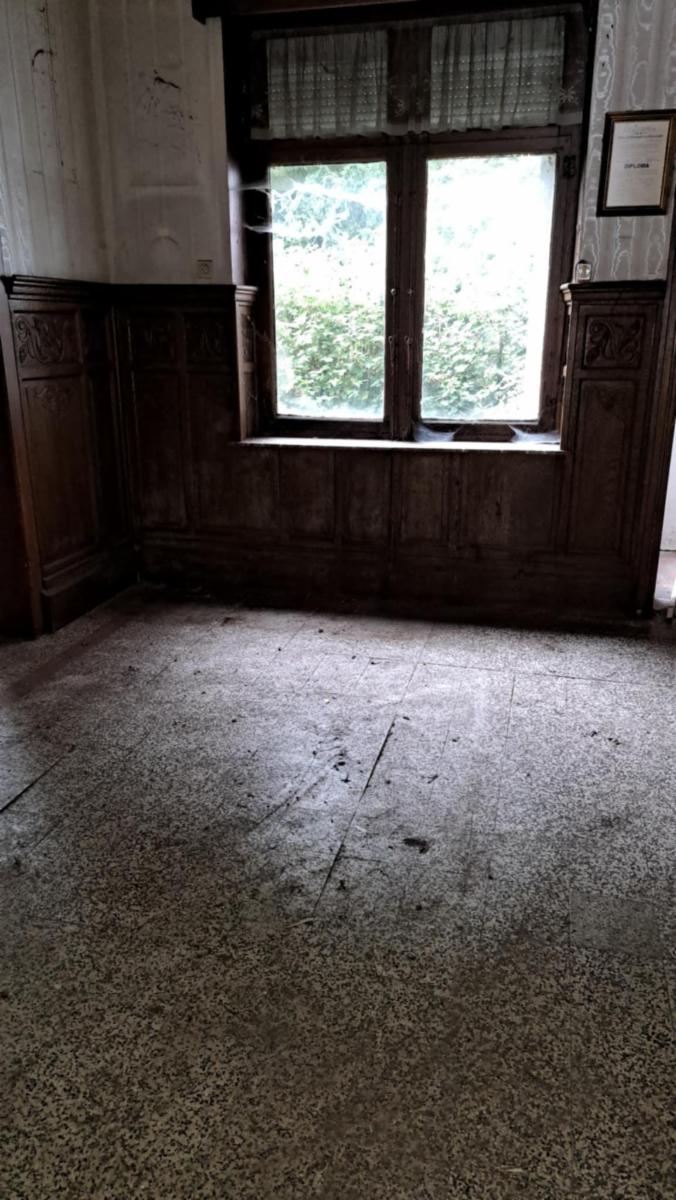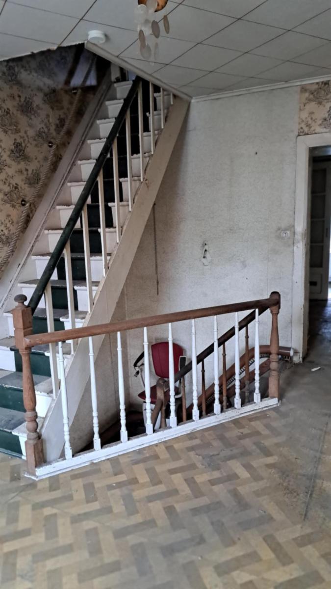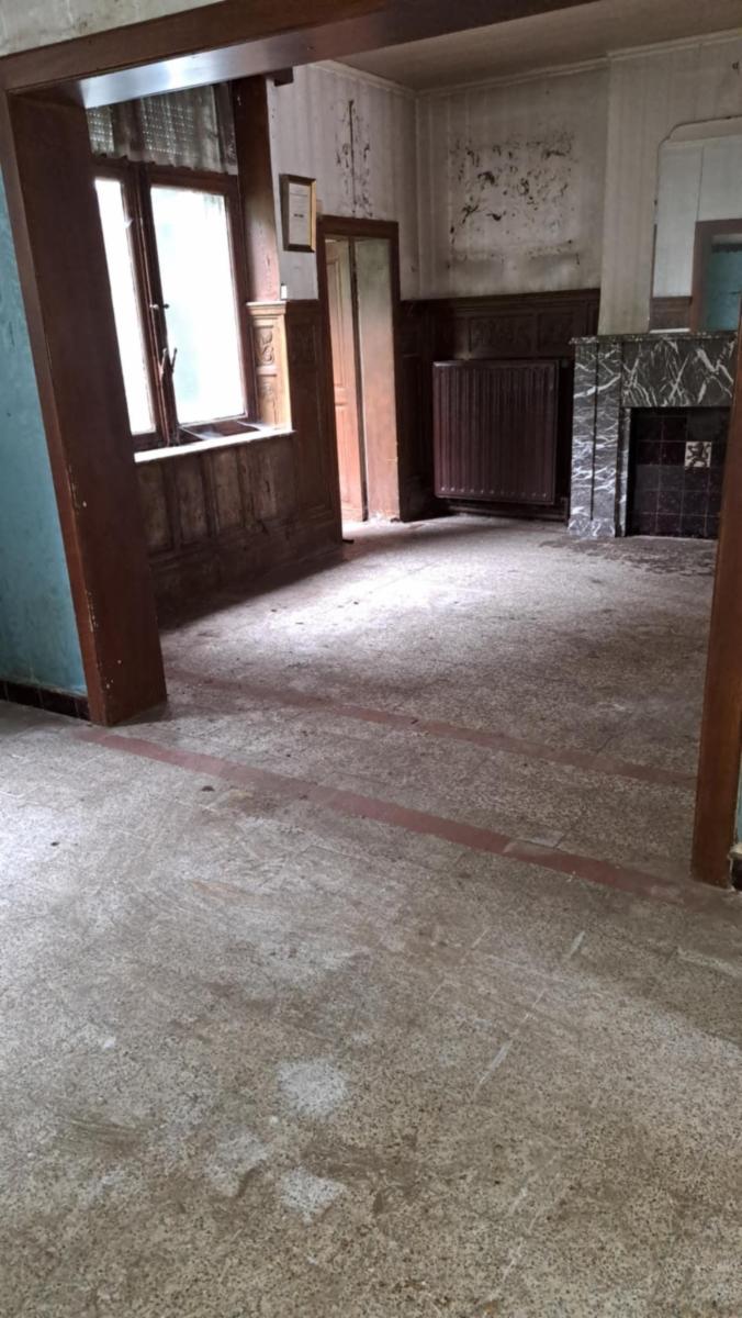 Ce bien se compose : au rez : hall d'entrée, salon, salle à manger/living, cuisine, wc; à l'étage: palier, 3 chambres (dont 2 communicantes), débarras, salle de bains, (baignoire+évier); grenier : accessible par un escalier, possiblité de 2 chambres supplémentaires. Caves. Beau jardin boisé et passage latéral. Chauffage central mazout (chaudière hors service). Châssis en PVC et en bois. Travaux à prévoir. Superficie : 18 a 67 ca - RC: 605 €